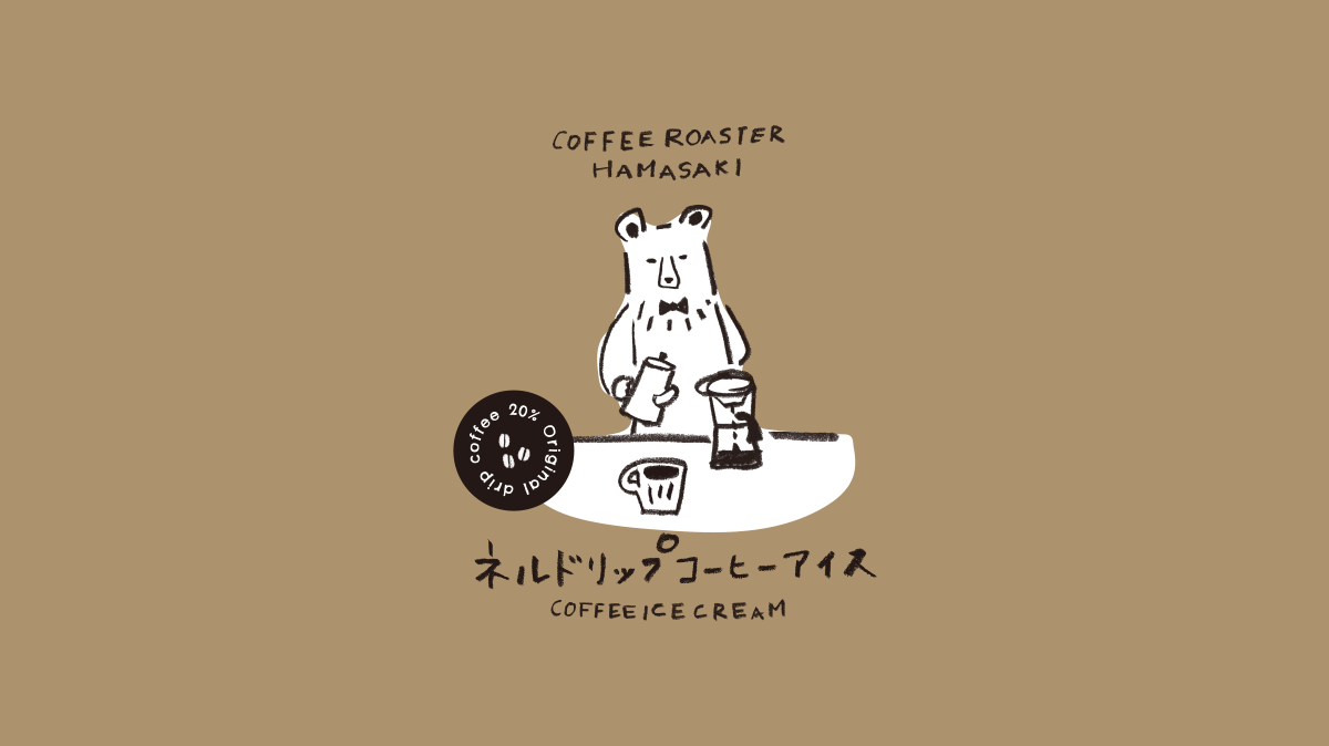 COFFEE ROASTER HAMASAKIさまが開発したアイスクリーム「ネルドリップコーヒーアイス」の商品パッケージシールを制作しました。